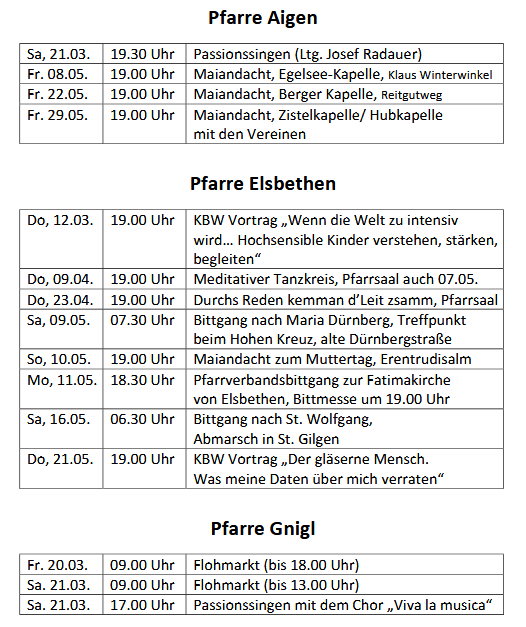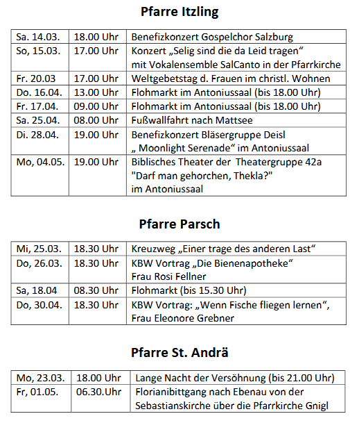 in den acht Pfarren unseres Pfarrverbands RECHTS DER SALZACH.